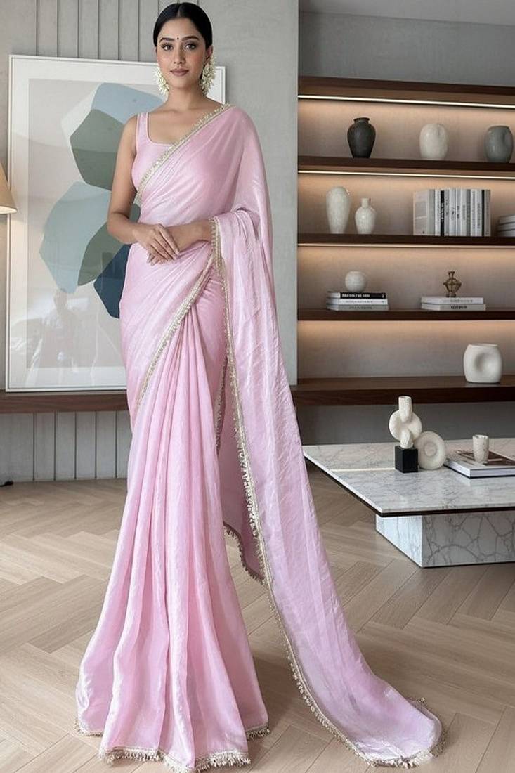 If you find the product for less we'll match it! Know More• Saree : Color- Pink / Fabric- Organza • Blouse : Color- Pink / Fabric- Organza Saree Details