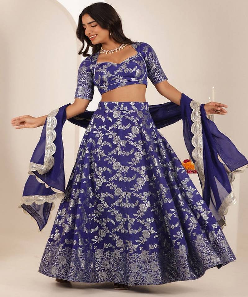 • Style : Circular Lehenga • Fabric : Silk • Work : Embroidered • Color : Blue Dupatta Details