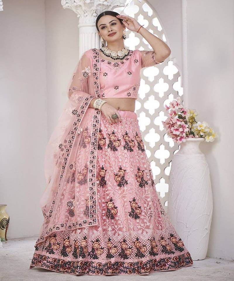 • Style : Circular Lehenga • Fabric : Net • Work : Embroidered • Color : Pink Dupatta Details