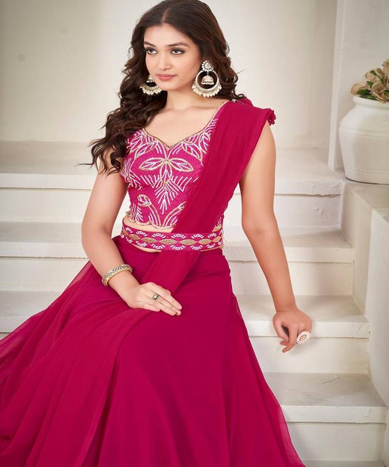 • Fabric : Georgette • Color : Pink • Work : Fancy • Length : 2.5 Blouse Details