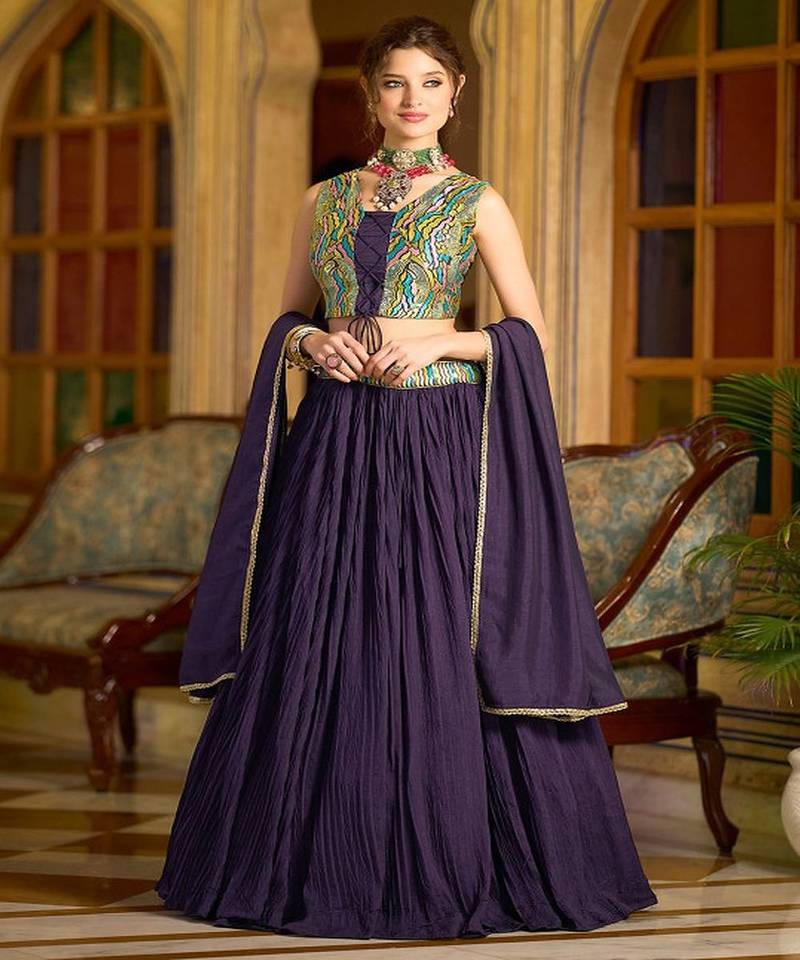 If you find the product for less we'll match it! Know More• Dupatta : Color- Violet / Fabric- Art Silk Lehenga Details
