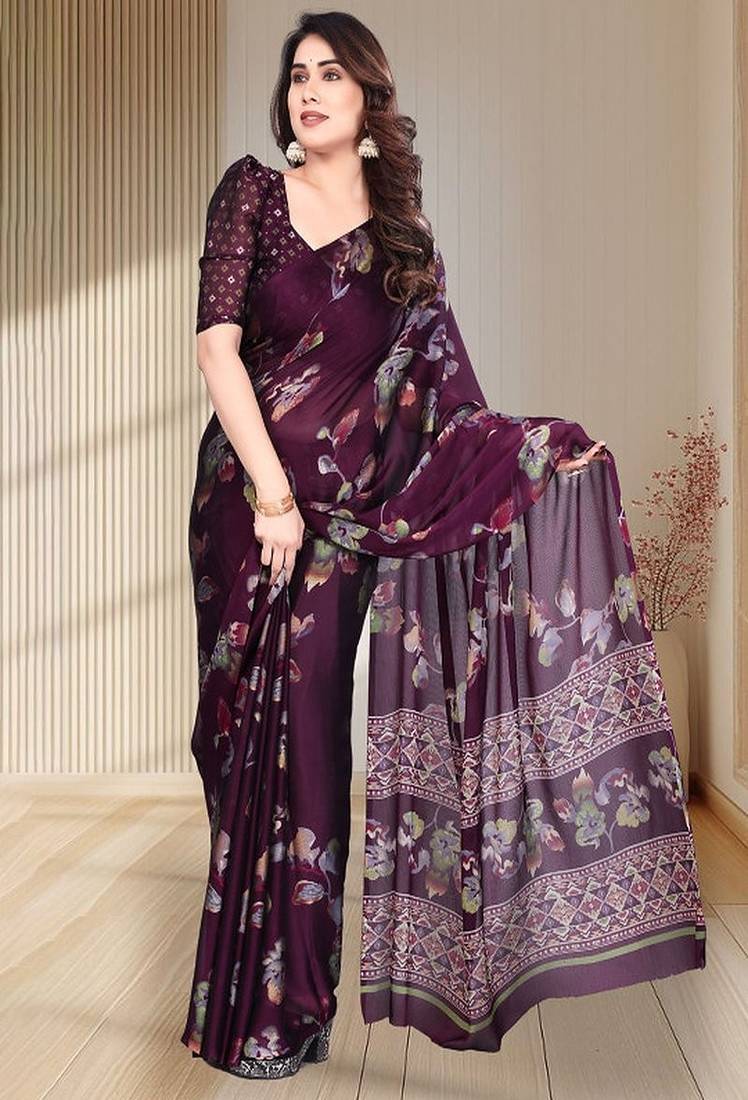 Floral Printed Pure Chiffon Saree