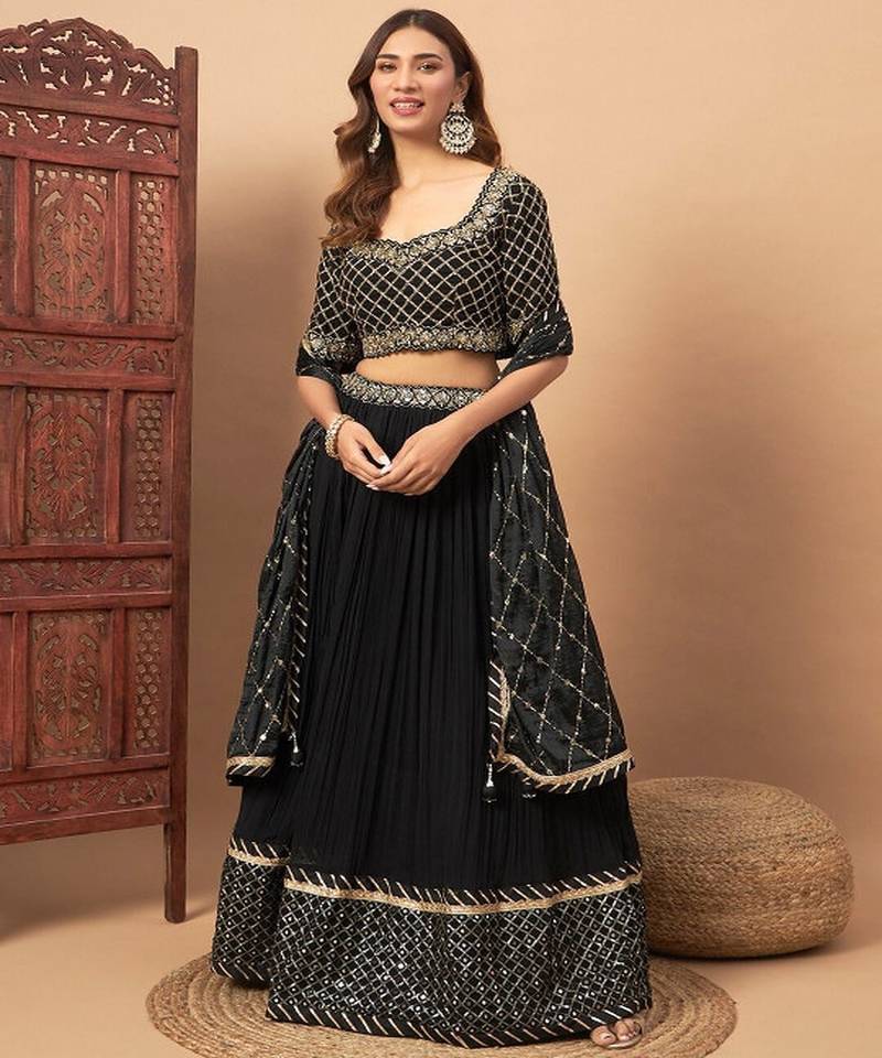• Product Id : 4756227 • Package Details : 1 Lehenga / 1 Choli / 1 Dupatta • Type : Lehenga Choli Designs • Type : Mirror Work • Look : Traditional • Pallu Style : Fancy Pallu • Choli Sleeve : Quarter Sleeve Choli • Choli Neck Style : Round Neck Choli • Stitching : Semi Stitched • Lining Fabric : Satin • Work : Mirror • Length : 46.0 • Min Waist Size : Na • Max Waist Size : Na • Min Hip Size : Na • Max Hip Size : Na • Lining Available : Yes • Lining Size : Na • Model Size : M - 5-8 business days in addition to order delivery time.This service is provided to customers outside India only.