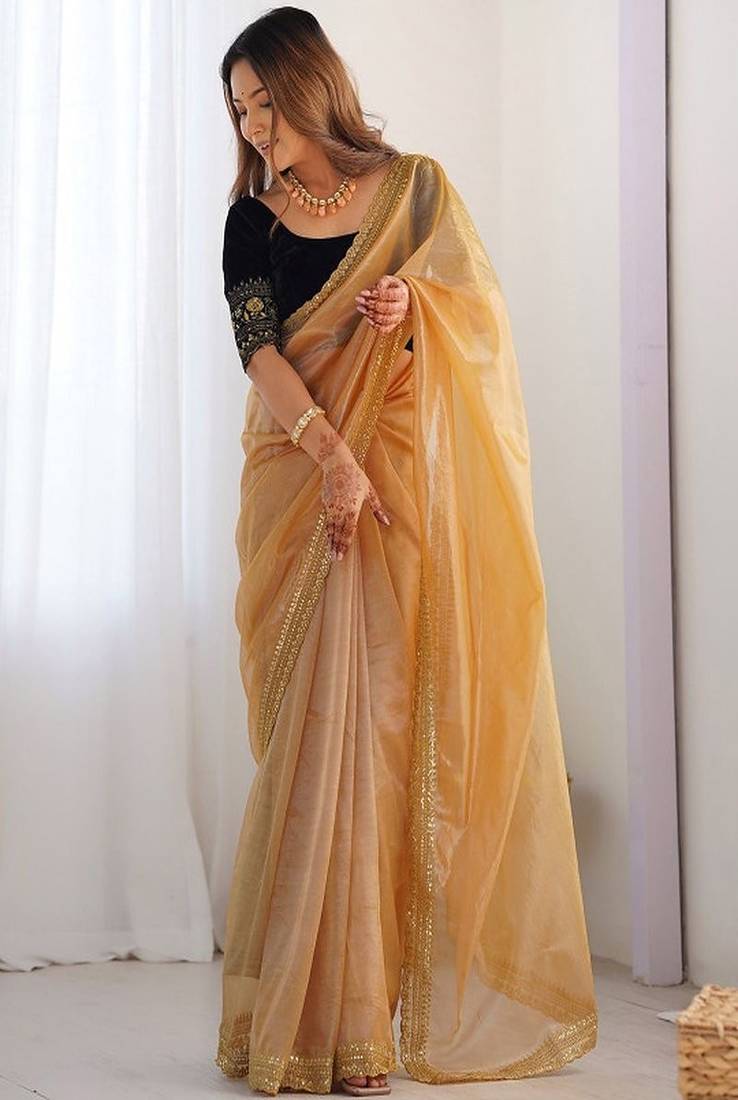 If you find the product for less we'll match it! Know More• Saree : Color- Gold / Fabric- Net • Blouse : Color- Gold / Fabric- Net Saree Details
