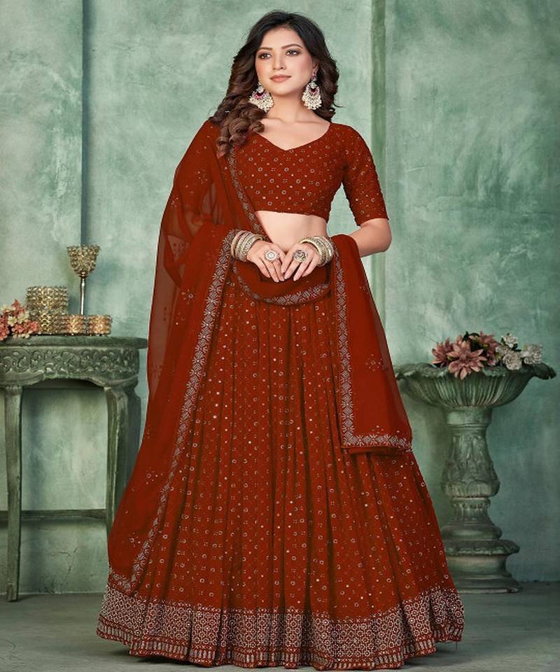 If you find the product for less we'll match it! Know More• Dupatta : Color- Maroon / Fabric- Georgette Lehenga Details