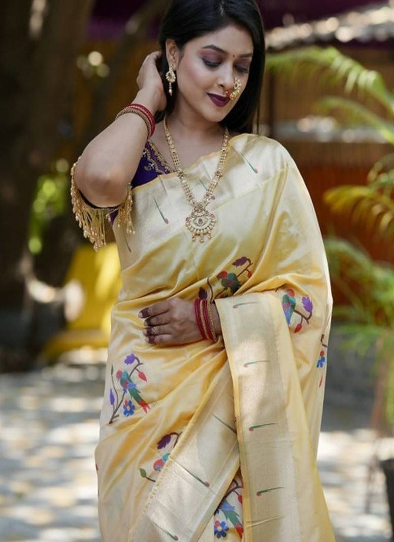 • Color : Cream • Fabric Of : Art Silk • Available : Yes • Size : 80 Cm • Fabric : Art Silk • Color : Cream • As Per Image : No Petticoat Details