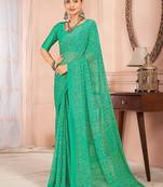 Green Bandhani Tradtional Print Chiffon Saree With Unstitch Blouse
