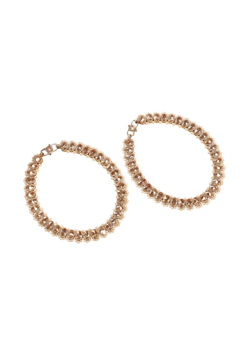 This Saloni Fashion Jewellery Elegant Circle Shape Pearl Brown Kundan Stone Antique Gold Plated Set of 2 Anklet(Payal) For Women and Girls is made of Alloy will give you astonishing charm and super comfort.