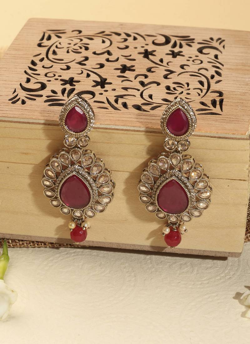 This Saloni Fashion Jewellery Stylish Round and Oval Shape Red Kundan Stone Antique Gold Plated Dangle Earring For Women and Girls is made of Brass will give you astonishing charm and super comfort.