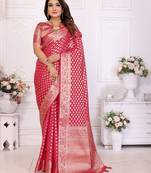• Product Id : 4533750 • Package Details : 1 Saree/1 Blouse • Type : Organza Sarees • Region : Gujarat, Maharashtra,Tamil Nadu, Andhra Pradesh, Karnataka, Delhi, Assam, Uttar Pradesh, Madhya Pradesh • Occasion : Ceremonial • Work : Woven • Type : Banarasi Silk • Look : Traditional • Pallu Style : Designer Pallu • Stitching : Unstitched • Width : 44 Inches • Length : 5.5 Metres Stitching [+]