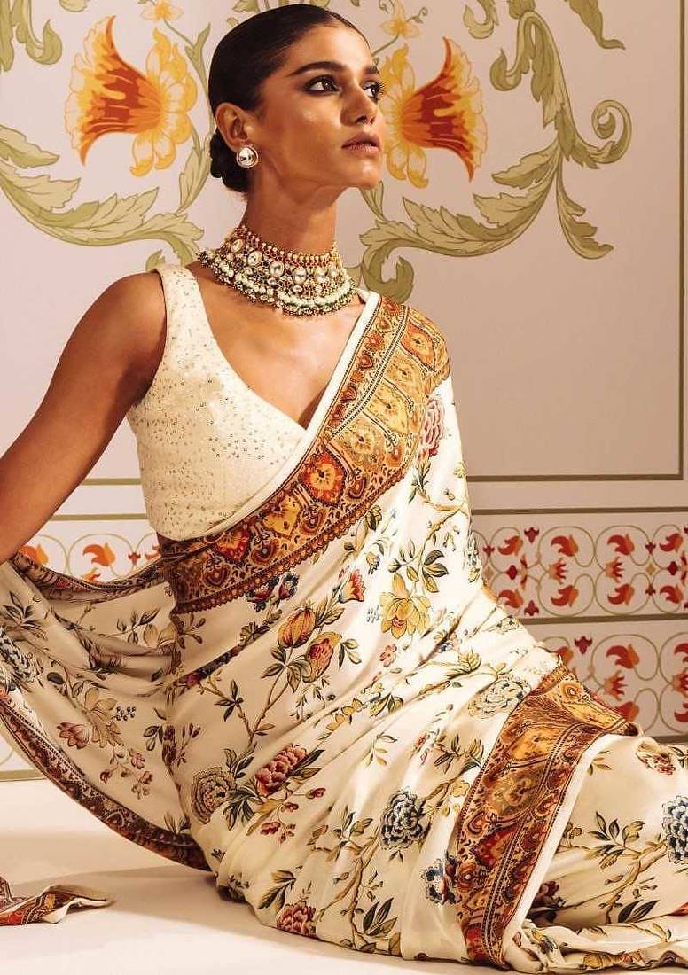 Elegant Soft Satin Saree crafted with Floral print. Saree comes with Unstiched Printed Satin Blouse Piece. Note: Blouse wore by Model is for Shoot Purpose only, actual Blouse might differ. Please refer real image attached