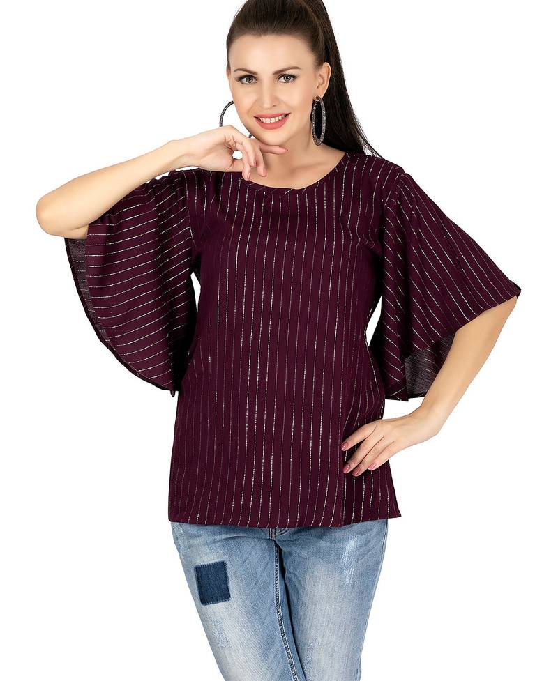 Maroon Viscose Three Quarter Sleeves Short Kurti