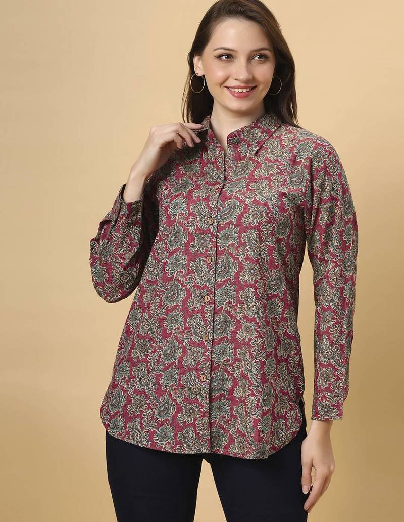 • Product Id : 4700386 • Package Details : 1 Kurtis • Type : Short Kurtis • Occasion : Casual • Fabric : Cotton • Work : Printed • Type : Abstract Print • Look : Fashion • Sleeve : Full Sleeve • Neck Style : Collar Neck Kameez • Color : Maroon • Stitching : Stitched • Length : 46.0 Payments [+]