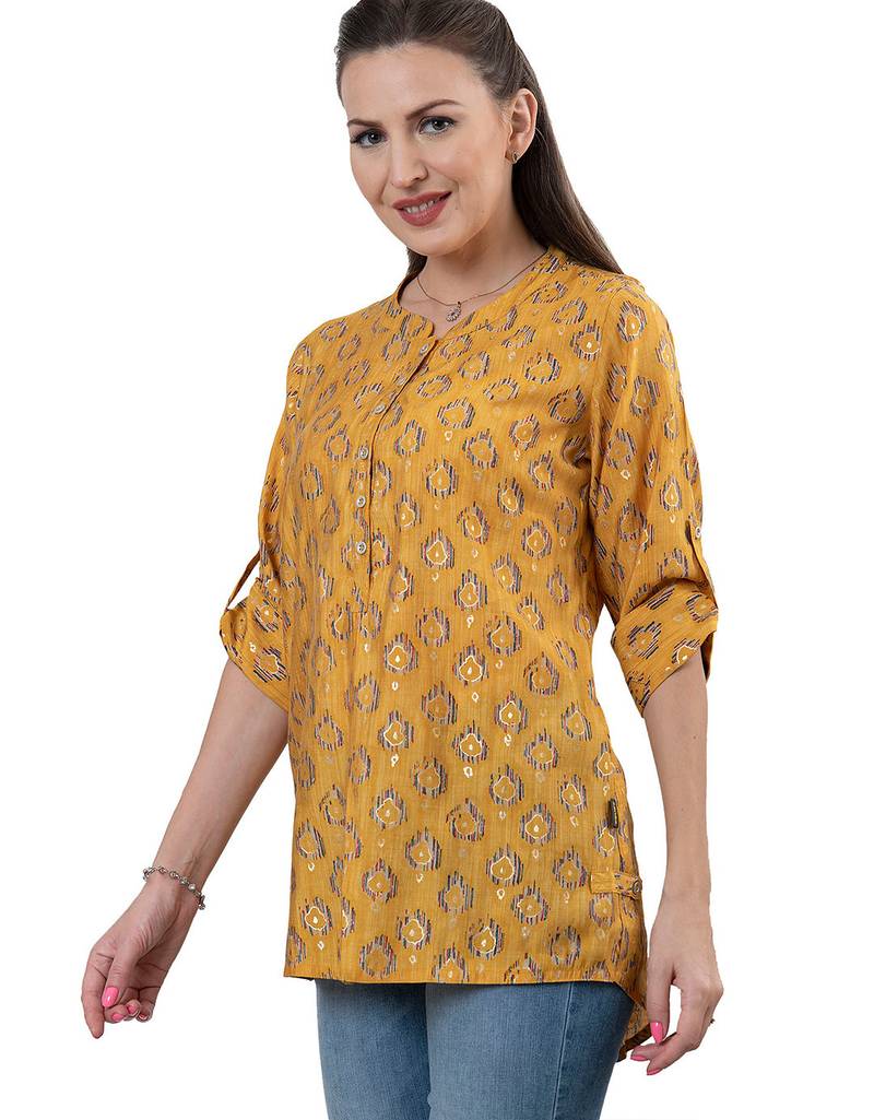 Mustard Viscose Three Quarter Sleeves Short Kurti