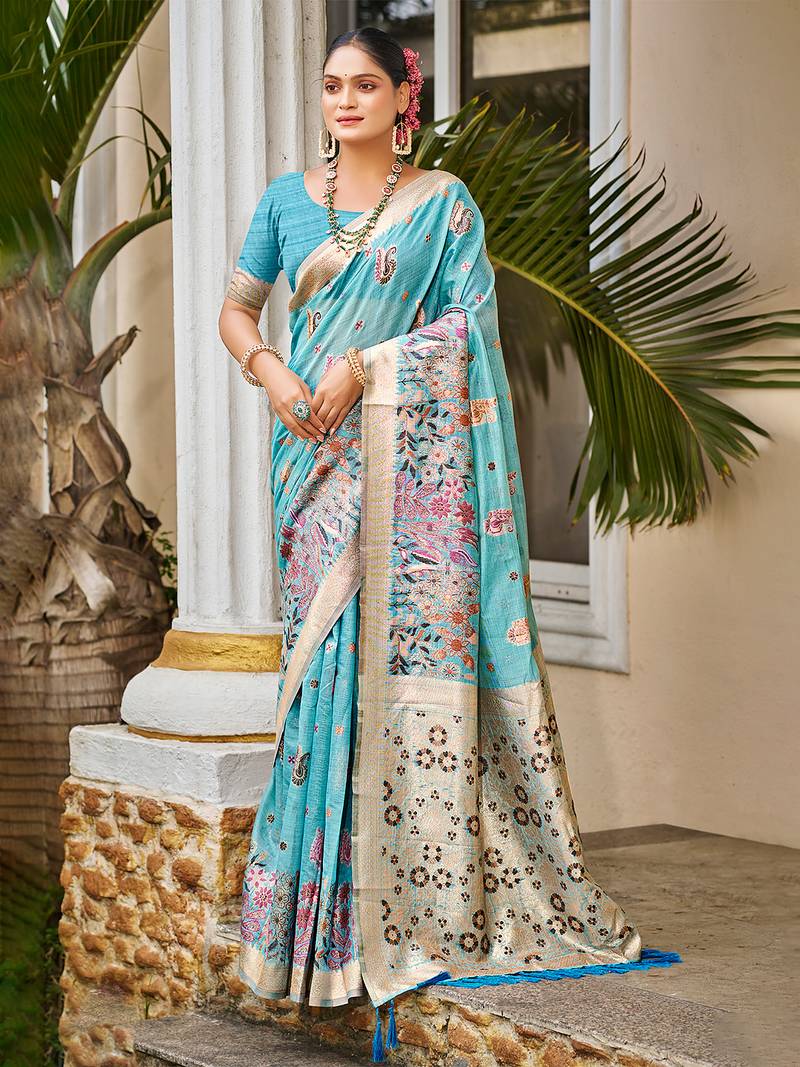 Blue Cottan Silk Blend With Meena Woven Work Traditional Saree