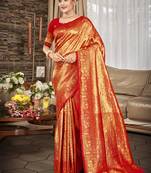 Sangam Prints Crimson Red Kanjivaram Silk Woven Work Traditional Saree