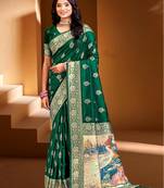 Sangam Prints Dark Green Silk With Digital Pallu Woven Work Traditional Saree