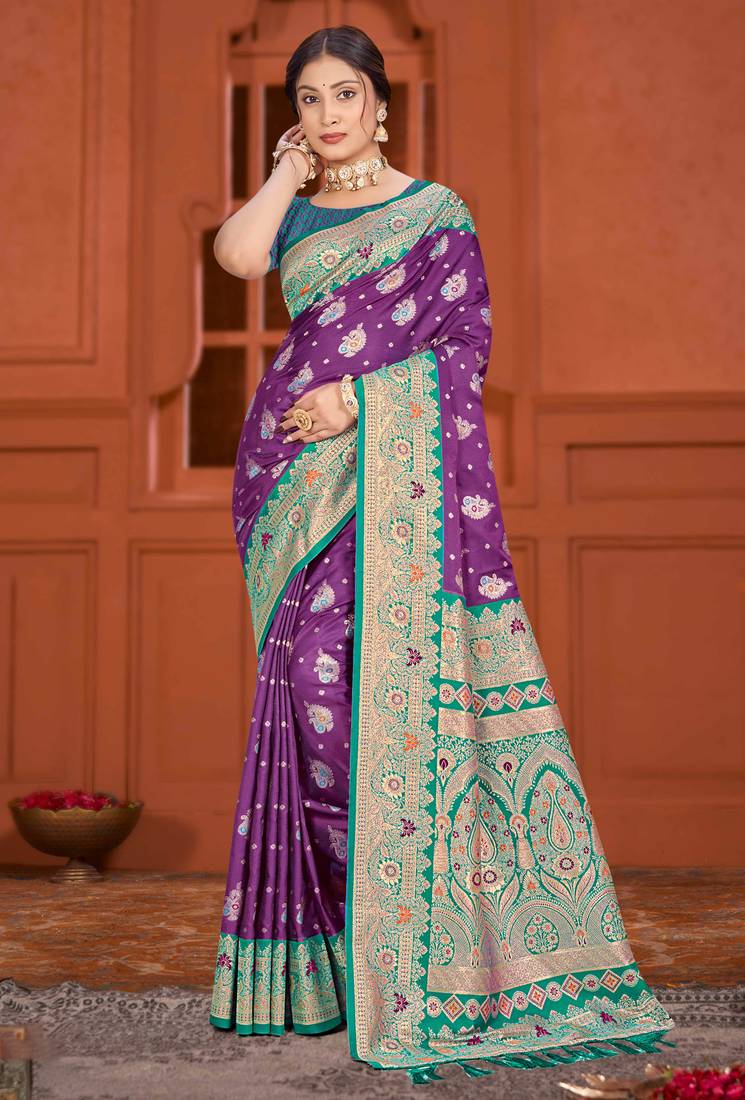 • Border : Designer Border • Fabric Of : Satin • Color : Purple • Color : Purple Blouse Details