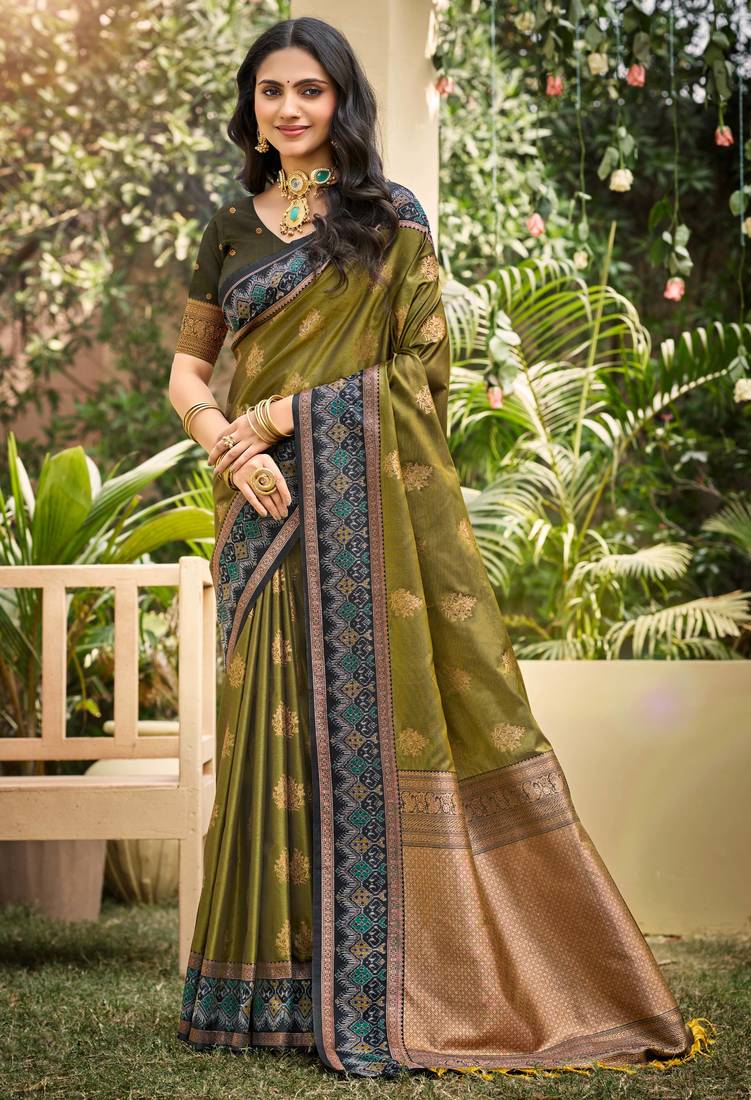 • Border : Designer Border • Color : Green • Fabric Of : Silk Blend • Color : Green Blouse Details