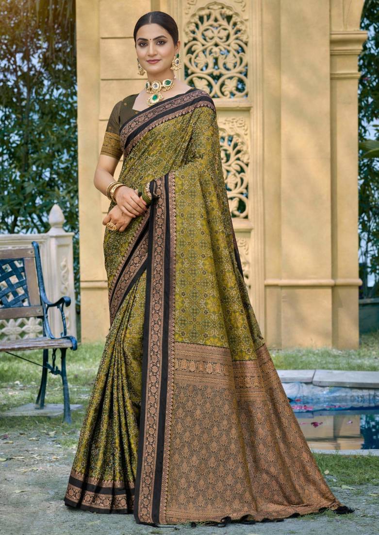 • Saree : Color- Mehendi / Fabric- Silk Blend • Blouse : Color- Mehendi / Fabric- Silk Blend Saree Details