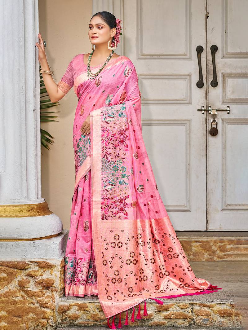 Pink Cottan Silk Blend With Meena Woven Work Traditional Saree