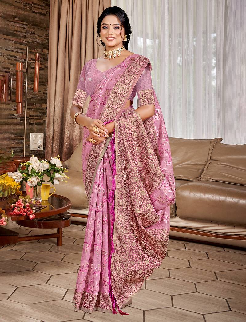 Pink Cottan Silk Blend With Meena Woven Work Traditional Saree