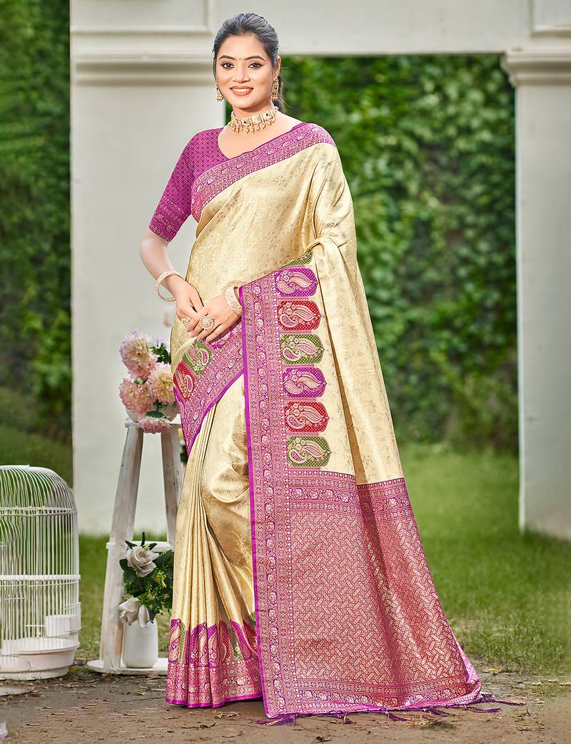 Rani Pink Silk Blend Woven Work Traditional Saree