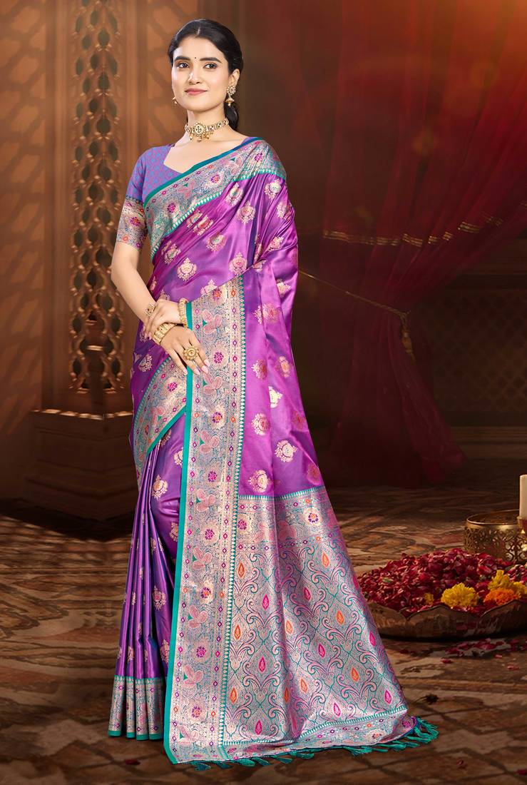 • Border : Designer Border • Color : Purple • Fabric Of : Silk Blend • Color : Purple Blouse Details