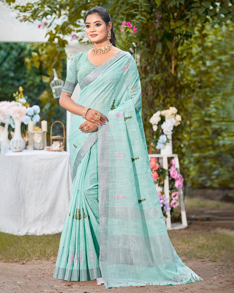 • Border : Designer Border • Fabric Of : Linen • Color : Sky Blue • Color : Sky Blue Blouse Details