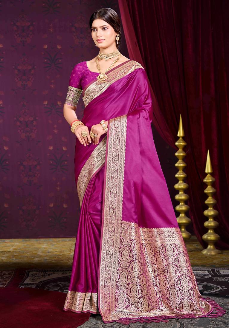 Wine Purple Silk Blend Woven Work Traditional Saree