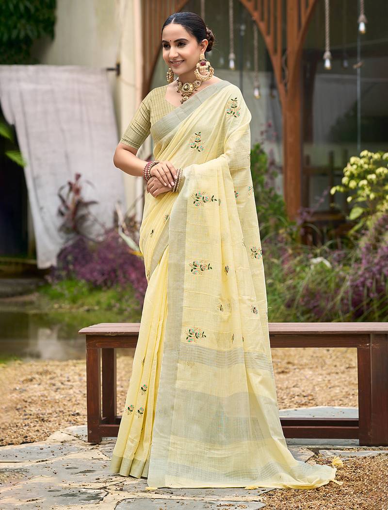 • Border : Designer Border • Fabric Of : Linen • Color : Light Yellow • Color : Light Yellow Blouse Details