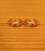 These gold look toe rings are made in silver and brass alloy with imitation ruby and emerald colour cz stones of very fine quality. These cute toe rings are handcrafted to perfection with high quality finish as seen in real diamond jewellery and are plated with 18kt nickle free gold rhodium that gives the design a real look.