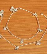 Add a touch of ethnic elegance to your jewelry collection with this exquisite White Metal Anklet, intricately crafted with a silver plated copper finish. This delicate yet durable piece features multiple tiny ghungroo (bell) charms that jingle softly with every step, offering a traditional look that's perfect for festive occasions, weddings, or everyday ethnic wear. The anklet is designed with a sleek and flexible metal chain base, ensuring comfort and ease of wear. Its subtle shine and graceful design make it a charming accessory for any outfit be it sarees, lehengas, or fusion attire.