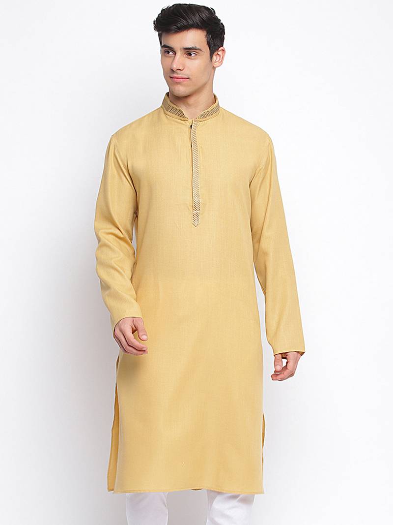 Complete your ethnic look with this kurta from Sanwara. Achieve a comfortably chic look for your next family outing or any family occasion when you team this Deep Beige Kurta.Comfortable material which is specially designed for your skin which will provide you a elegant and trendy look.We can also wear this kurta with by-color nehru jacket and to complete the fashion and style look we can wear a mojari or jutti.