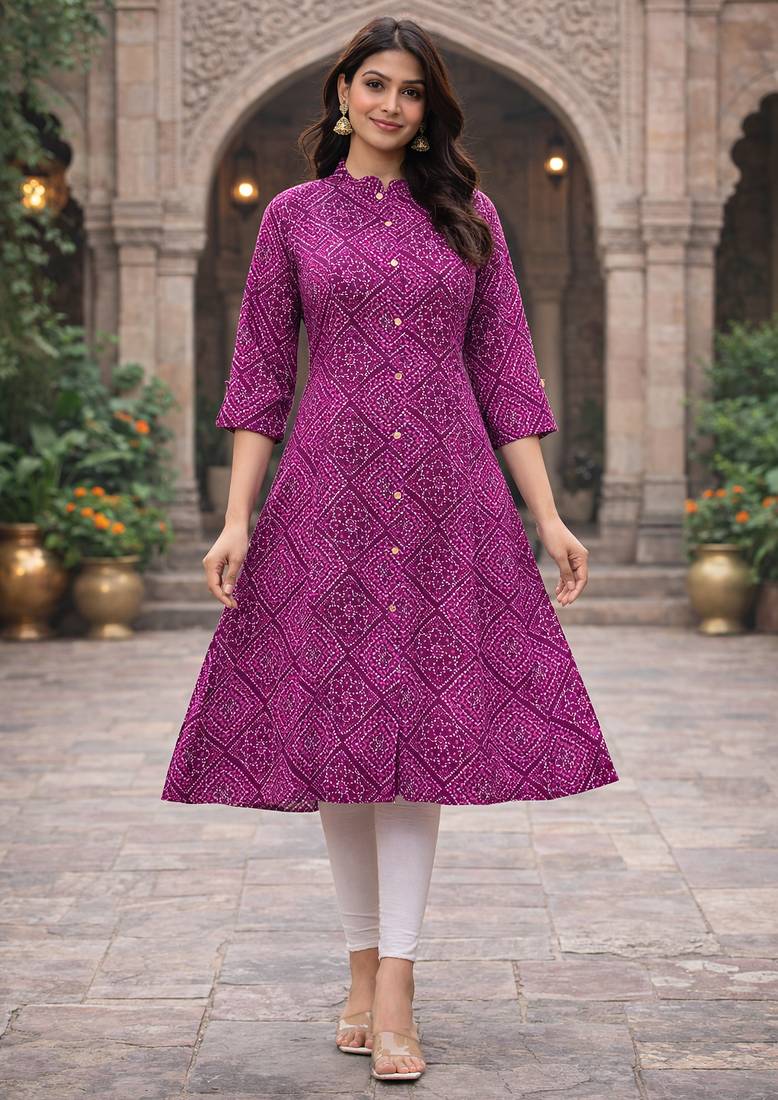 • Product Id : 4721417 • Package Details : 1 Kurta • Type : Long Kurti Designs • Fabric : Rayon • Work : Printed • Type : Geometric Print • Sleeve : Half Sleeve • Neck Style : Collar Neck Kameez • Color : Purple • Stitching : Stitched • Length : 44.0 Payments [+]
