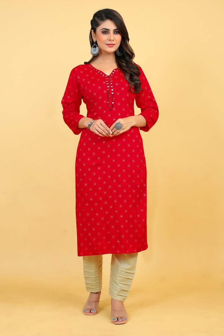 Seamore Rayon Raani Mirror Work For Women Stitched Kurta Set
