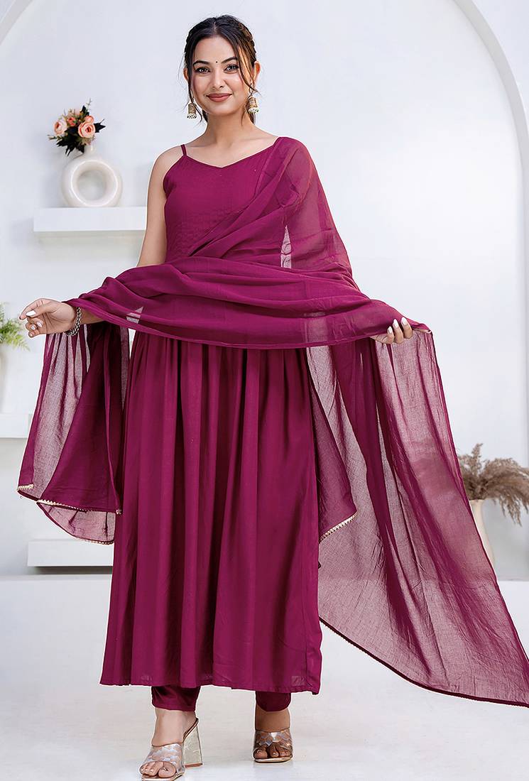 • Style : Salwar • Fabric : Rayon • Color : Purple • Color : Purple Dupatta Details