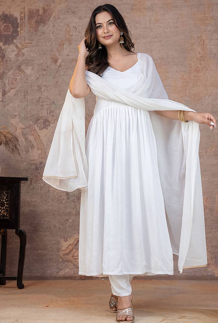 • Style : Salwar • Fabric : Rayon • Color : White • Color : White Dupatta Details