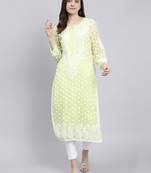 Seva Chikan Hand Embroidered Green Georgette Lucknowi Chikan Kurta With Slip