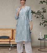 Stone Blue Chanderi Lucknowi Chikankari Kurta
