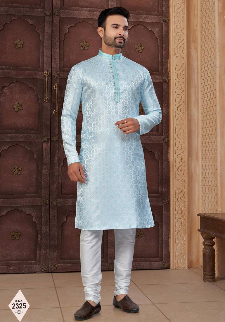 Mint Blue Imported Jackard Kurta And Pajama For Mens