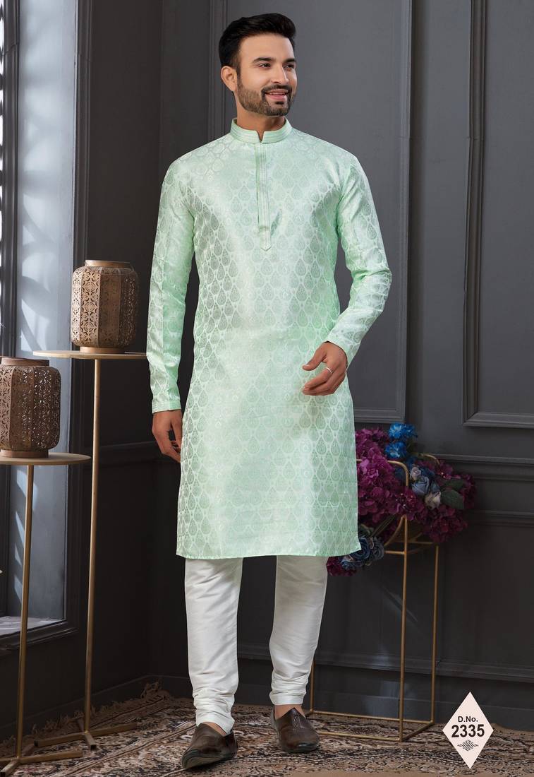 Mint Green Imported Jackard Kurta And Pajama For Mens