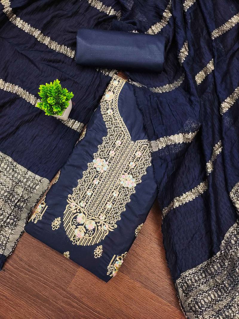 Blue Embroidered Cotton Semi Stitched Churidar Dress Materials Semi stitched