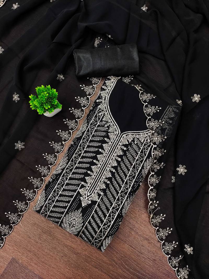 Black Embroidered Georgette Semi Stitched Churidar Dress Materials