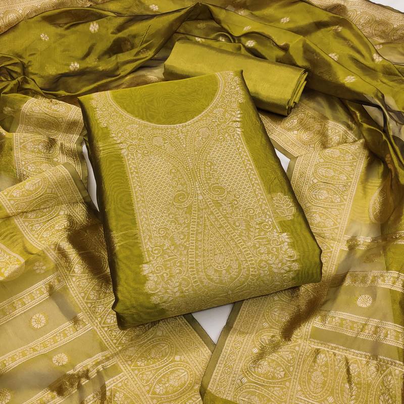 Green Woven Shimmer Semi Stitched Churidar Dress Materials