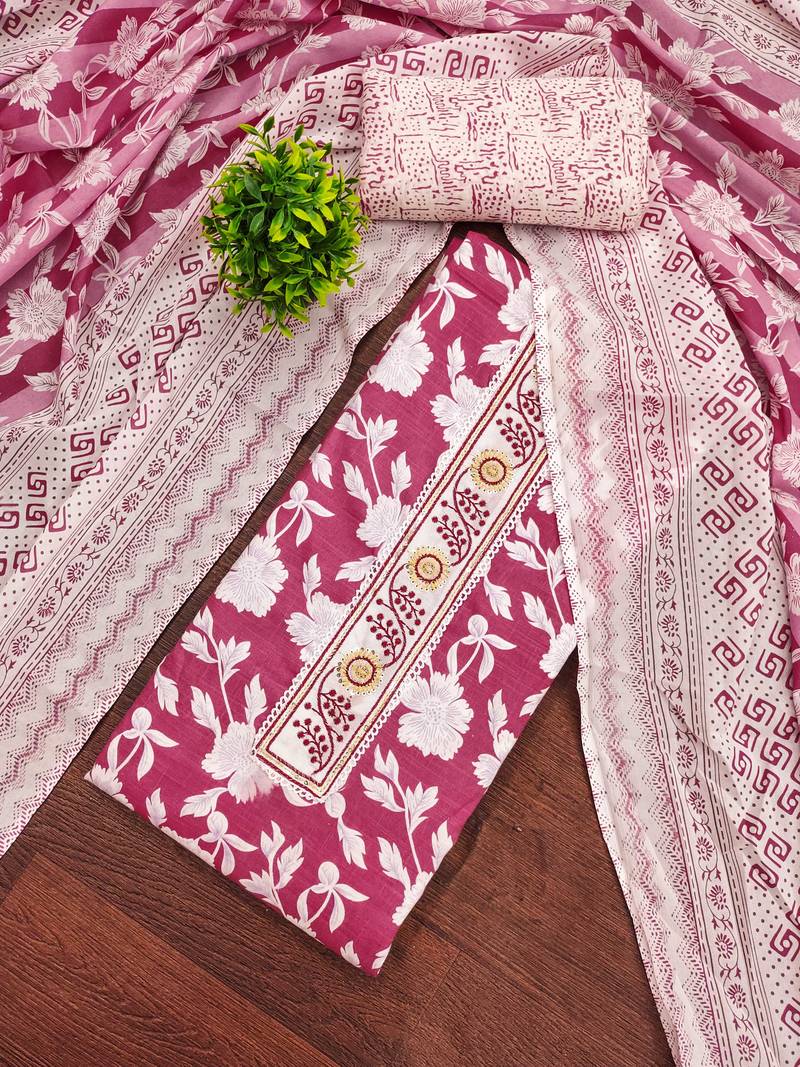 If you find the product for less we'll match it! Know MoreHandcrafted Designer Print And Handwork Neck With Fancy Printed Dupatta Straight Style 2.00 Mtr Unstitched Dress Material Top Of Multi Colour Cotton Fabric Also Including 2.00 Mtr Chudidar Style Bottom Piece Material Of Multi Colour Cotton Fabric With 2.00 Mtr Dupatta Of Multi Colour Cotton Fabric By Shadow & Saining Brand