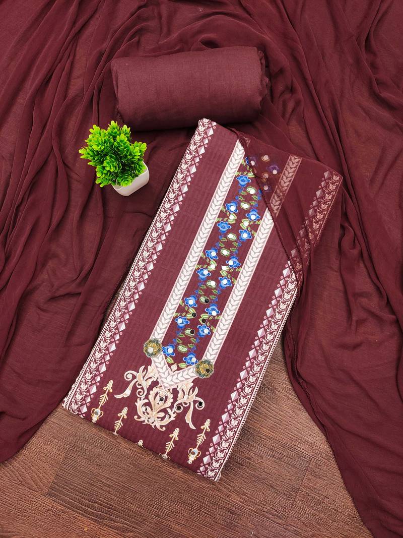 If you find the product for less we'll match it! Know MoreParty-Perfect Designer Print And Mirror Work With Stylish Dupatta Straight Style 2.00 Mtr Unstitched Dress Material Top Of Multi Colour Rayon Fabric Also Including 2.00 Mtr Chudidar Style Bottom Piece Material Of Brown Colour Rayon Fabric With 2.00 Mtr Dupatta Of Brown Colour Nazneen Fabric By Shadow & Saining Brand
