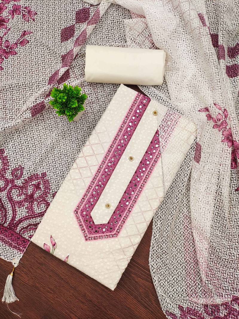 If you find the product for less we'll match it! Know MoreHeritage Heavy Thread Siffly Embroidery, Daimond And Fancy Border With Designer Printed Work Dupatta Straight Style 2.00 Mtr Unstitched Dress Material Top Of Multi Colour Cotton Fabric Also Including 2.00 Mtr Chudidar Style Bottom Piece Material Of White Colour Cotton Fabric With 2.00 Mtr Dupatta Of Multi Colour Cotton Fabric By Shadow & Saining Brand