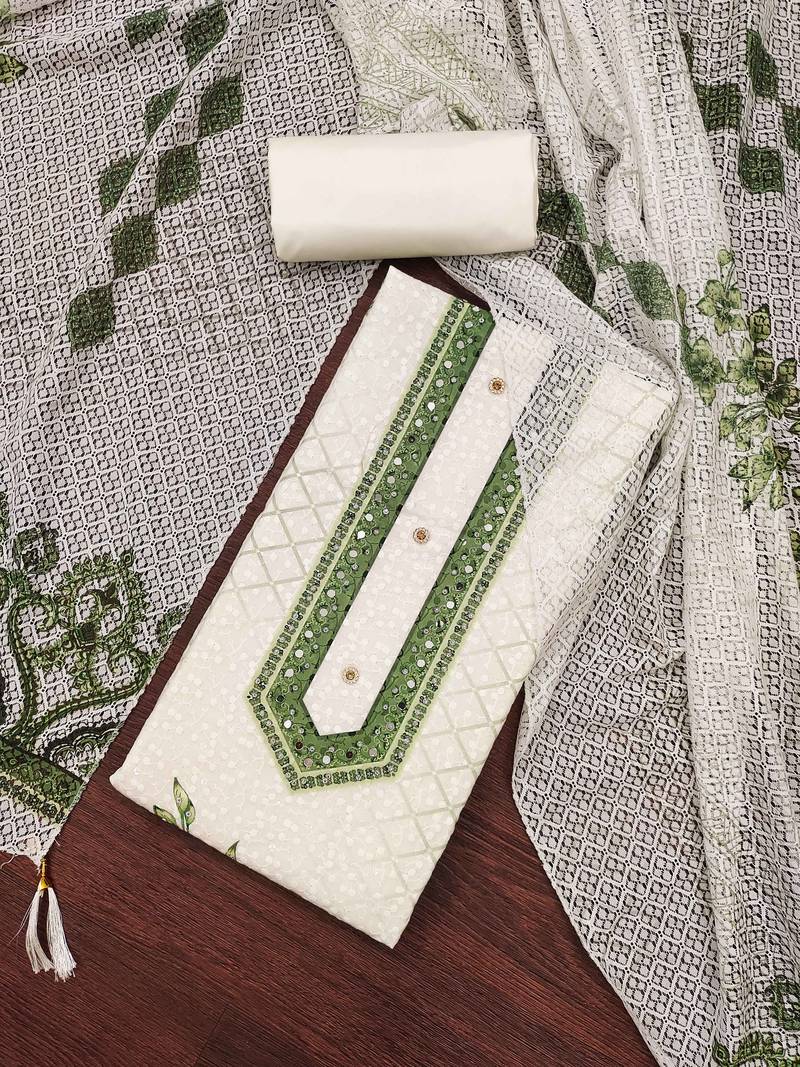 If you find the product for less we'll match it! Know MoreArtisanal Heavy Thread Siffly Embroidery, Daimond And Fancy Border With Designer Printed Work Dupatta Straight Style 2.00 Mtr Unstitched Dress Material Top Of Multi Colour Cotton Fabric Also Including 2.00 Mtr Chudidar Style Bottom Piece Material Of White Colour Cotton Fabric With 2.00 Mtr Dupatta Of Multi Colour Cotton Fabric By Shadow & Saining Brand