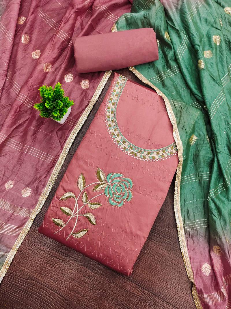 If you find the product for less we'll match it! Know MoreArtisanal Heavy Thread Daimond Embroidery And Fancy Border With Designer Weaving Dupatta Straight Style 2.00 Mtr Unstitched Dress Material Top Of Rust Colour Jaam Cotton Fabric Also Including 2.00 Mtr Chudidar Style Bottom Piece Material Of Rust Colour Cotton Fabric With 2.00 Mtr Dupatta Of Multi Colour Chanderi Cotton Fabric By Shadow & Saining Brand